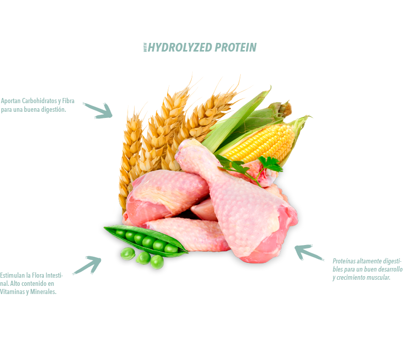 Ingredientes seleccionados de alta calidad: Baja capacidad alergénica y alta digestibilidad.