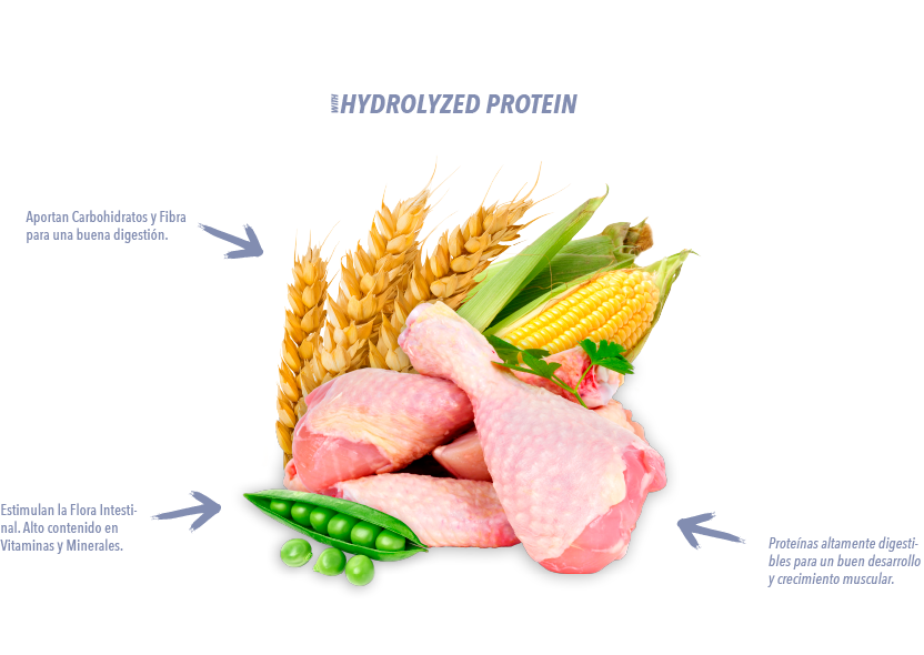 Ingredientes seleccionados de alta calidad: Baja capacidad alergénica y alta digestibilidad.
