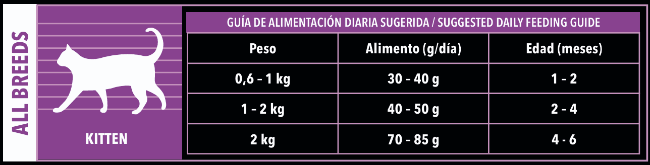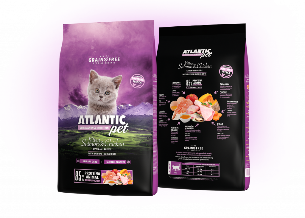 Kitten Salmon & Chicken es un alimento hipoalergénico formulado para el crecimiento saludable de los gatitos. Con un 85% de proteína animal, su receta con pollo, salmón, huevo y superalimentos como calabaza y mejillón de labio verde favorece el desarrollo, la inmunidad y una digestión equilibrada.