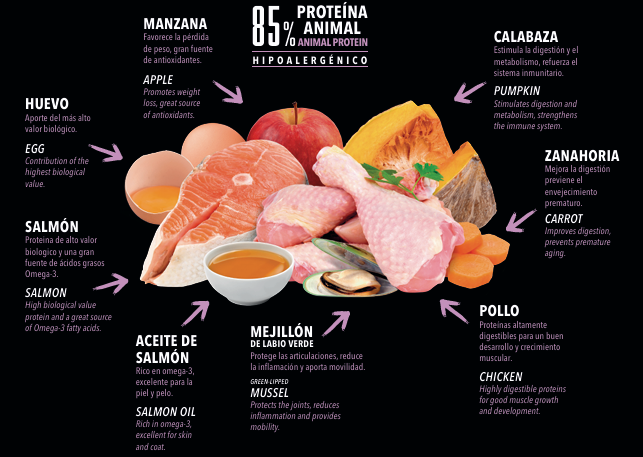 Ingredientes seleccionados de alta calidad: Baja capacidad alergénica y alta digestibilidad.