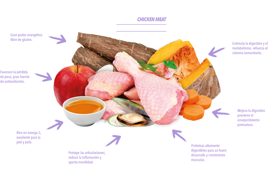 Mejora la piel y el pelaje: Los nutrientes del pollo pueden contribuir a un pelaje brillante y una piel sana.